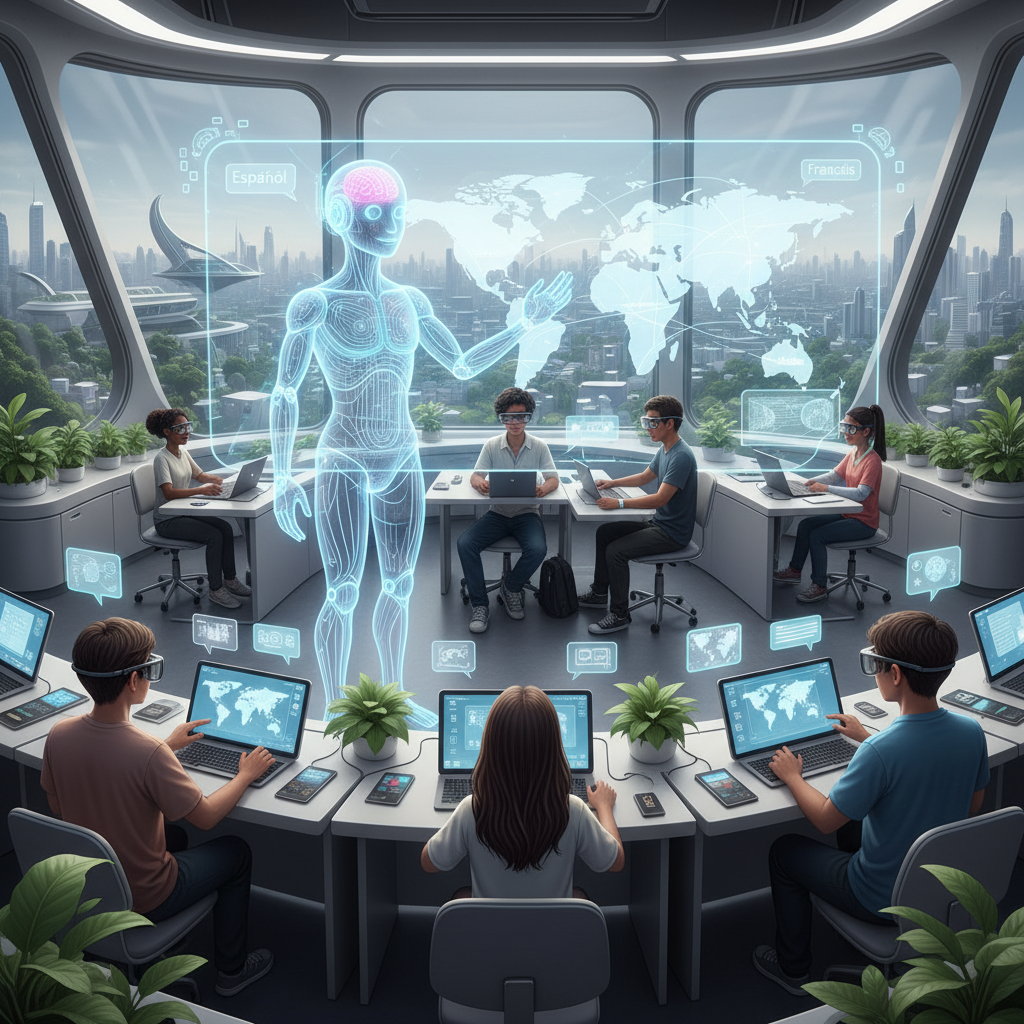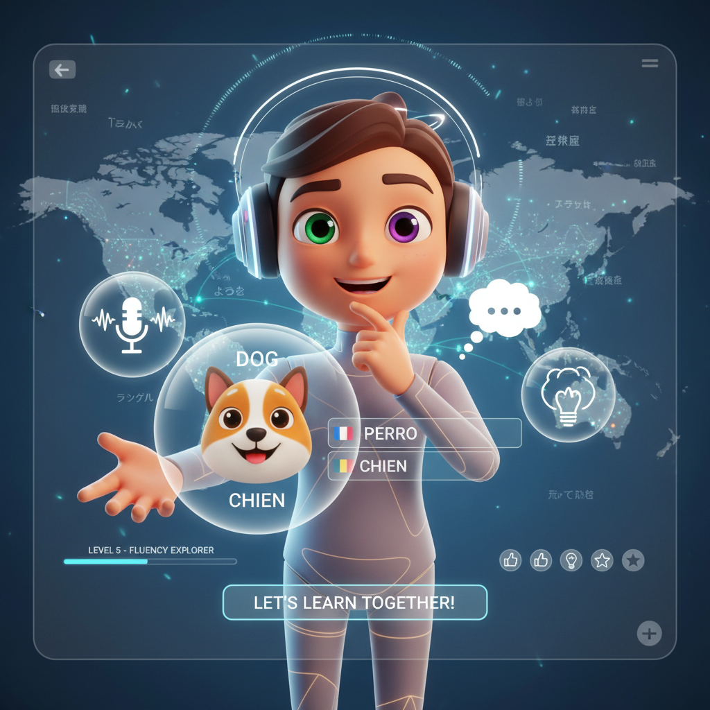Cyfrowa postać wyposażona w sztuczną inteligencję, zdolna do prowadzenia interaktywnych lekcji językowych, analizowania postępów i dostosowywania feedbacku do indywidualnych potrzeb.