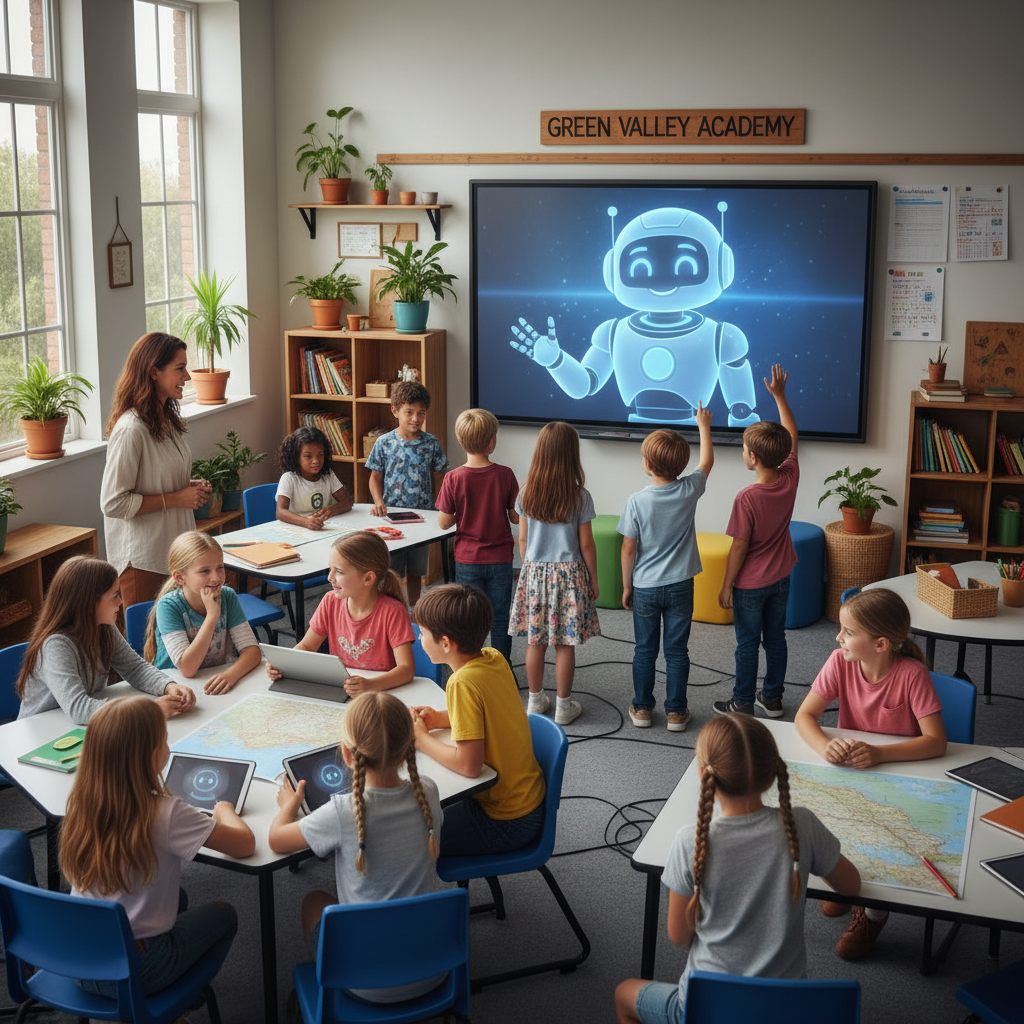 Zaawansowany bot lub animowany avatar, który tłumaczy, zadaje pytania i prowadzi uczniów przez materiał, imitując realną interakcję nauczyciel–uczeń. -