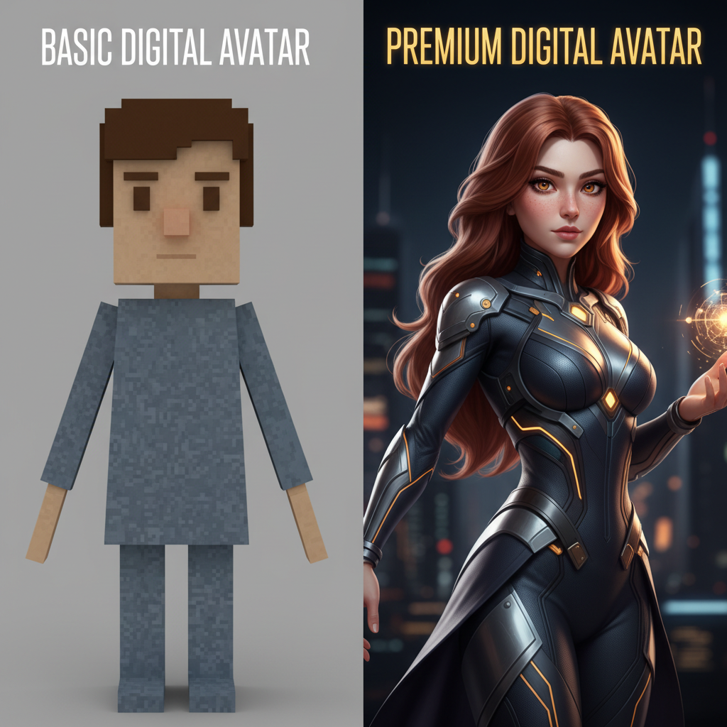 Porównanie jakości darmowego i płatnego awatara cyfrowego – wizualna różnica mówi sama za siebie.