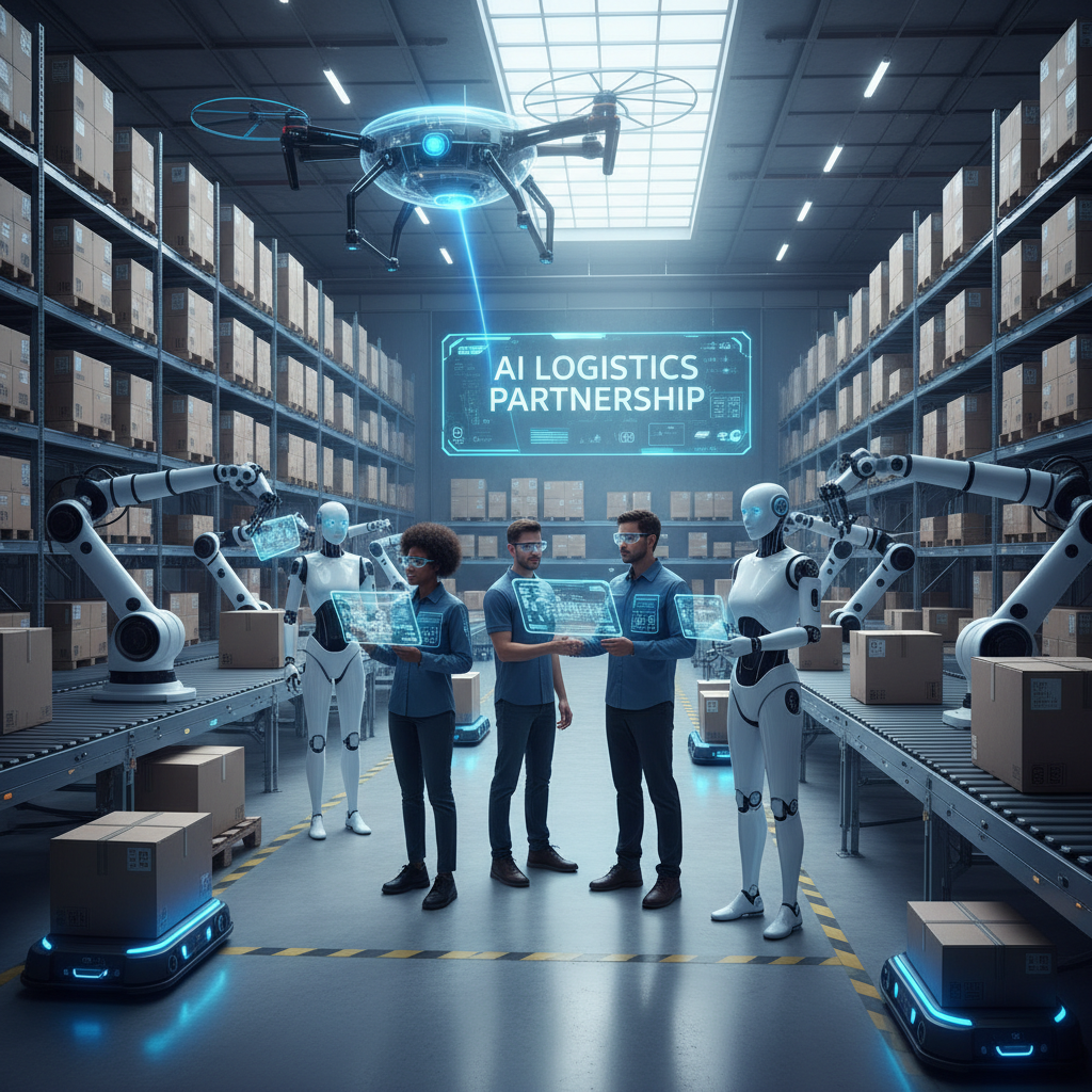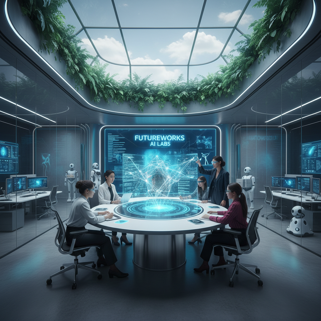 Nowoczesny zespół współpracujący z AI — symbol sukcesu wdrożenia generatora chatbotów do automatycznej analizy