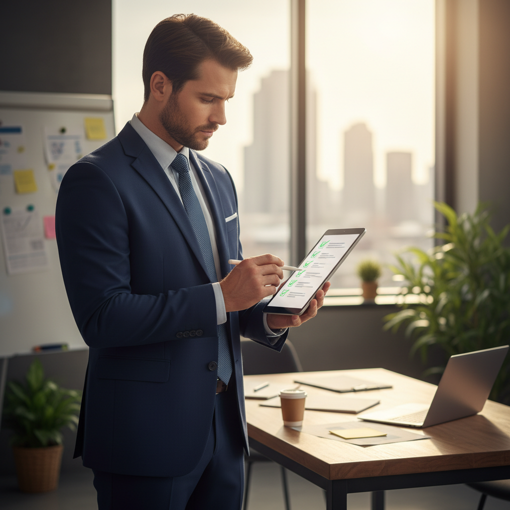Fotografia: Przedsiębiorca sprawdza checklistę przed wdrożeniem chatbota do analizy interakcji