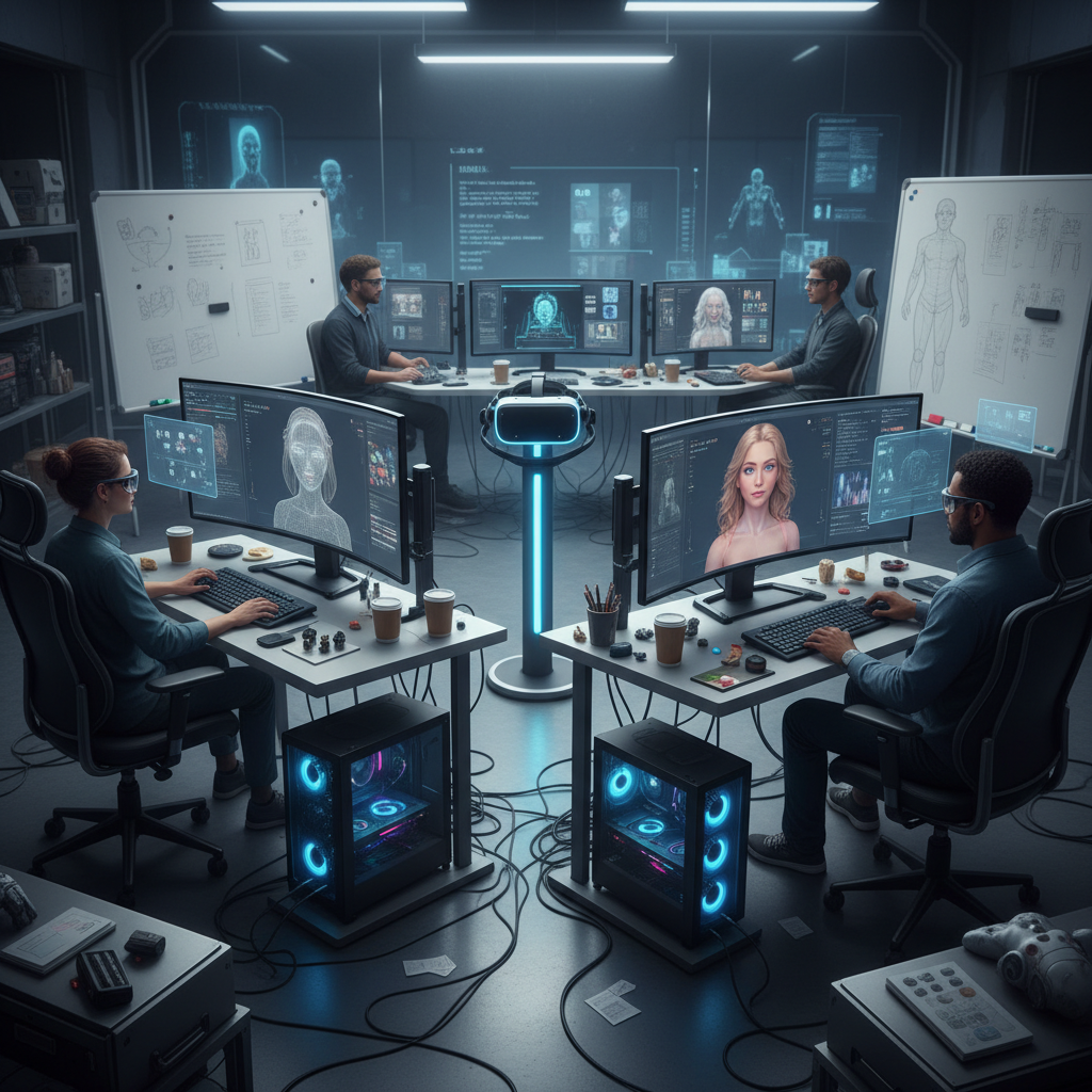 Specjaliści pracujący nad avatarami VR, korzystający z różnych platform.