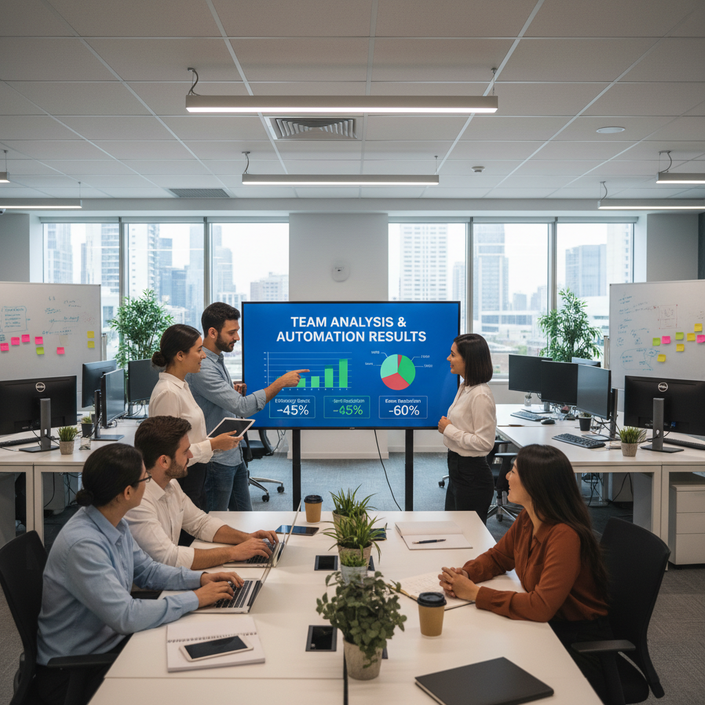 Zespół podczas analizy efektów automatyzacji komunikacji po wdrożeniu platformy