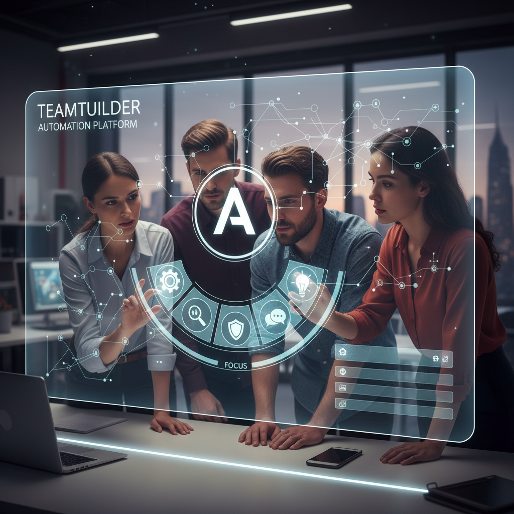 Zespół kreatywny współpracujący z narzędziem AI do automatyzacji komunikacji