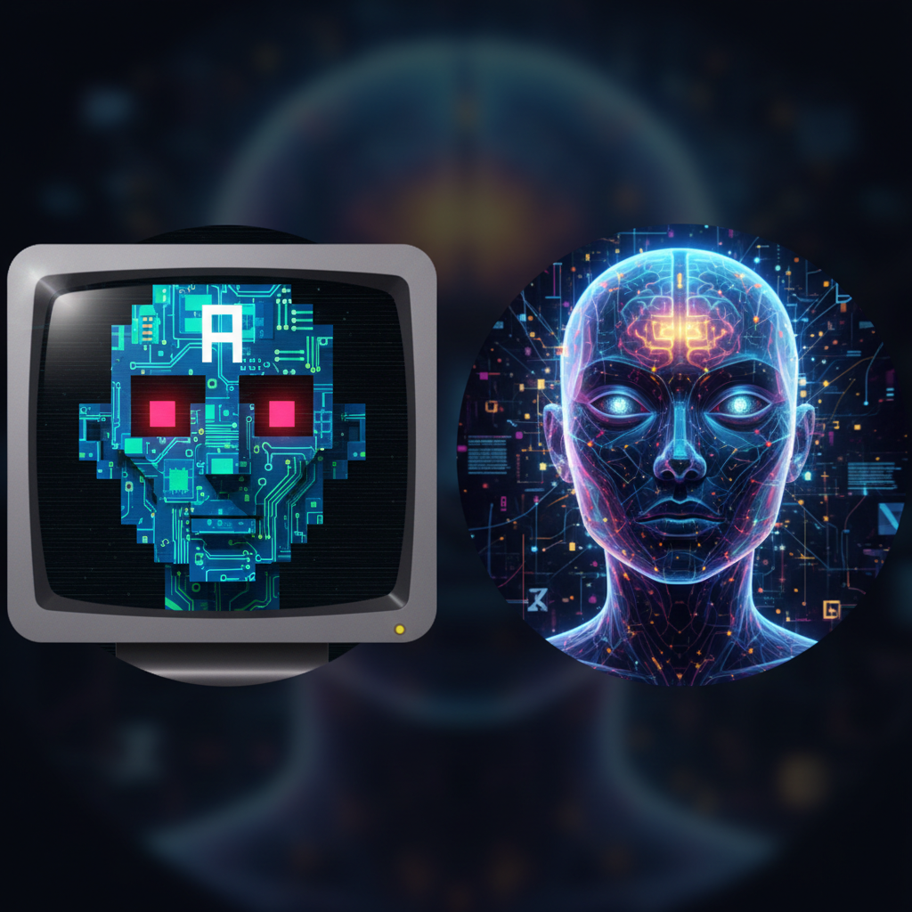 Porównanie ewolucji: od pikselowych ikon do hiperrealistycznych awatarów AI.